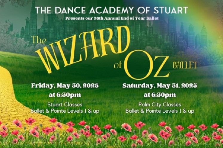 The Dance Academy of Stuart is proud to present our 27th annual end of season ballet production, The Wizard of Oz. This ballet production features our dancers enrolled in ballet and pointe levels 1 and up performance classes.