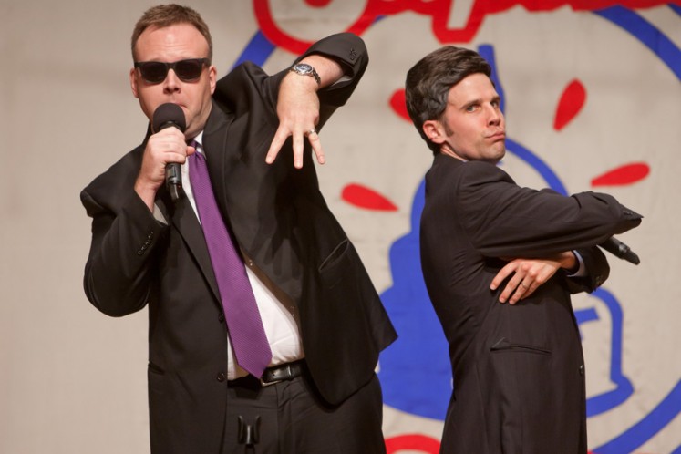 In 2007, she predicted the 2008 race pitting Clinton against Giuliani. That was wrong but it doesn’t matter, because to the Capitol Steps, whatever the situation is, they mine it for humor. For Clinton, there may be a song to the Pointer Sisters’ “I’m So Excited,” but in the hands of the Capitol Steps, it’s “I’m Not Indicted.” They may do a play on little hands or bad hair. It’s hard to tell the political persuasion of the audience because everyone is howling. American politicians are not the only fodder: the Russian leader has his turn with “Putin on the Blitz.” No one is too elevated or important not to be taken down a peg or three.