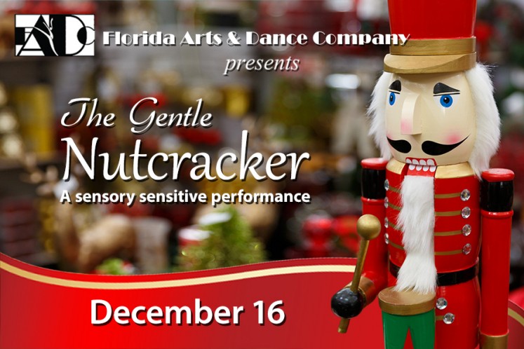 The Gentle Nutcracker, presented by Florida Arts & Dance Company students is a shortened version of the holiday classic. This performance features subdued lights and sounds for those who may be sensory sensitive or those who would like to introduce young children to the story of “The Nutcracker”. The magical tale follows a young girl’s journey with her prince to a delicious land filled with leaping candy canes and sweet sugar plums. This ballet is set to the music of Tchaikovsky and is based on the story, “The Nutcracker and the King of Mice” by E.T.A. Hoffman.